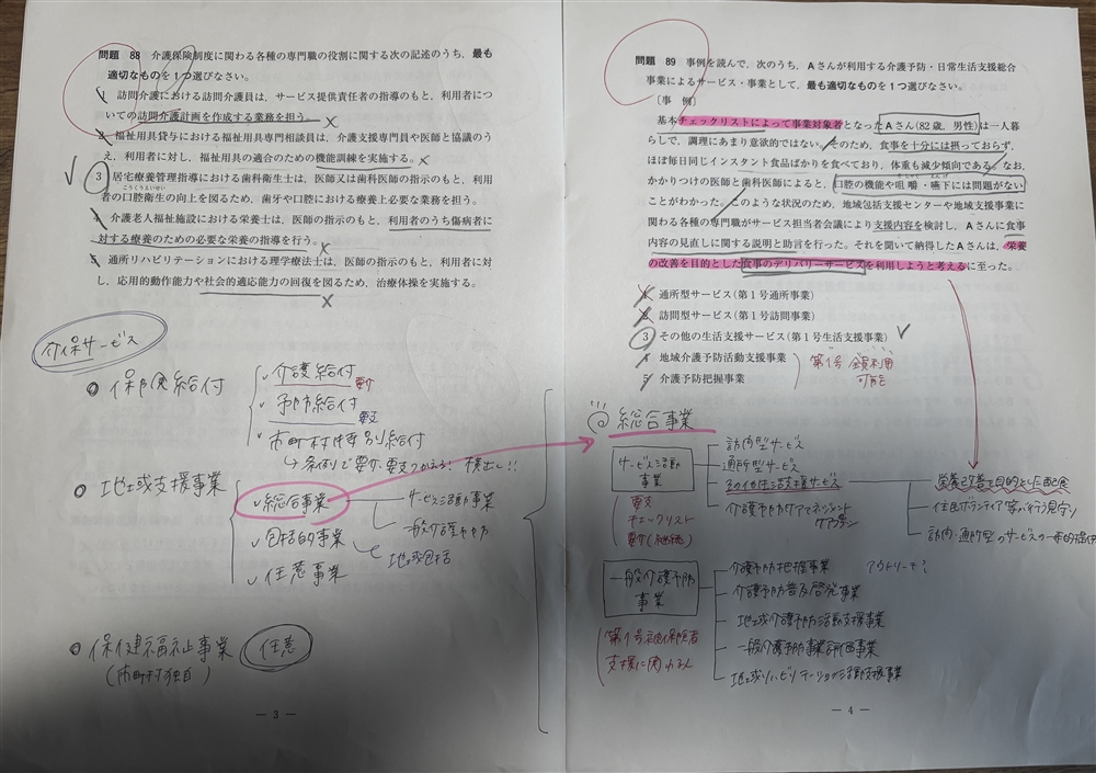 「権利擁護」の科目が苦手でした。対策としては、参考書の内容をノートにまとめた内容を書き出したり、一問一答を友達と出し合いました。「権利擁護」⇒「地域包括支援センターの権利擁護事業」など関連を持たせながら学習をしました。