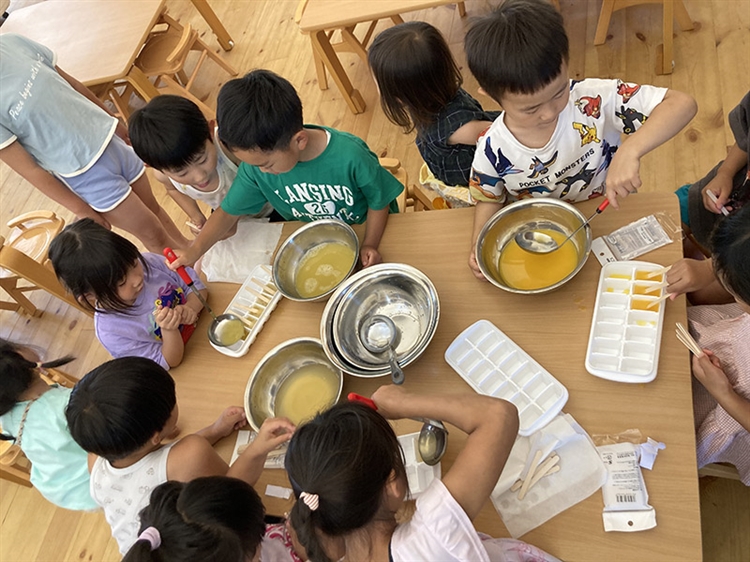 完成したアイスを食べたときの、子どもたちの満足そうな表情は忘れられません。「やってみたい」という気持ちから、子どもたちと一緒に考え、実現する楽しさを改めて感じました。子どもたちと一緒に考える過程もとても楽しかったです。