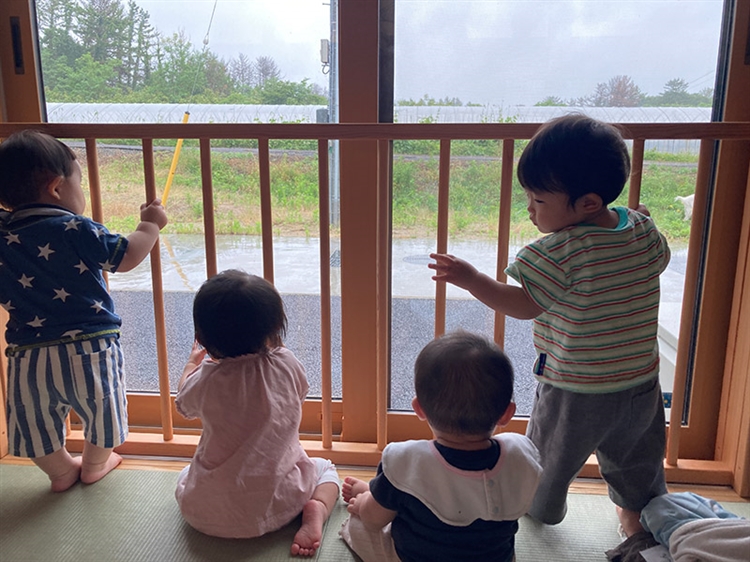 「ゆきちゃん、ごはん食べてるね」「今日は雨だね」と言葉を交わしながら、ゆったりと外を眺めて気持ちが落ち着くと、自分から別の場所へ移動する子どもたちもいました。慌ただしい一日の中でも、子どもたちとほっと一息つける大切な時間だと改めて感じました。