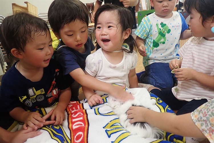 しかし、隣の部屋からモルモットを持ってくると、触ったり餌をあげようとしたり、次第に笑顔が見られてきた。