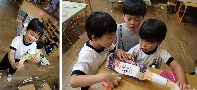 自分なりに考えながら、あそびを展開していく様子に保育者もワクワクした。子どもたちの「どうして?」「なぜ?」などの疑問を一緒に考えたり、そのきっかけづくりを行ったりしていきたいと思った。