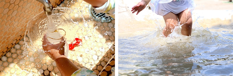 勢いよく出る水が容器の縁にあたって丸く撥ねていた。