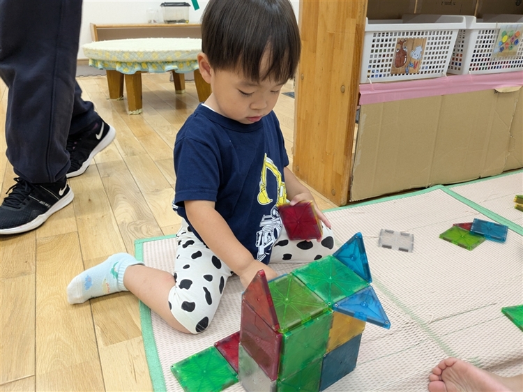 マグブロックという玩具で遊ぶのが大好きなT君。よく遊びに熱中しています。
