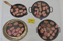 お肉の赤い部分はすべて裏返して焼く習慣を身につけたいので、判別しにくいレアな焼き色は使わないようにしましょう。