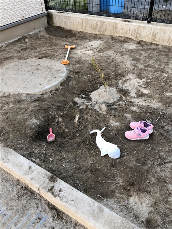 園庭で、Kちゃんは泥団子をつくり、小さな砂山をつくって一人で夢中になって遊んでいました。給食の時間が過ぎていることにふと気づくと、急いで保育室に行きました。その時、靴も泥団子もそのまま、砂山には木の枝がしっかりさしてありました。