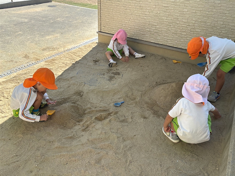 より速く山ができるようにと砂を集め、サポートに徹するEくんの姿に感心し、私たち保育者もEくんのサポートをお手本にしたいと思いました。