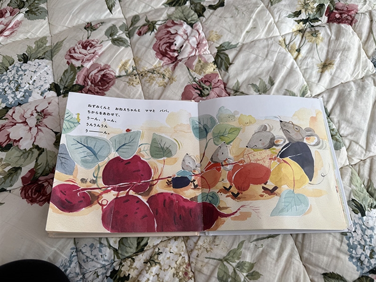 何度か繰り返した後、後ろに体重をかけて止まった。「ぬけた」とつぶやいた。私が「何が抜けた?」と聞くと「おいも」と答えた。絵本が大好きな2人は、ロープを芋のツルに見立てて、絵本の中の物語に入り込んでいるのだなとほっこりした。