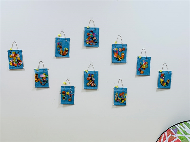 文字が大好きな2歳児クラスは、じぶんの名前の「頭文字」をタペストリーにしました。