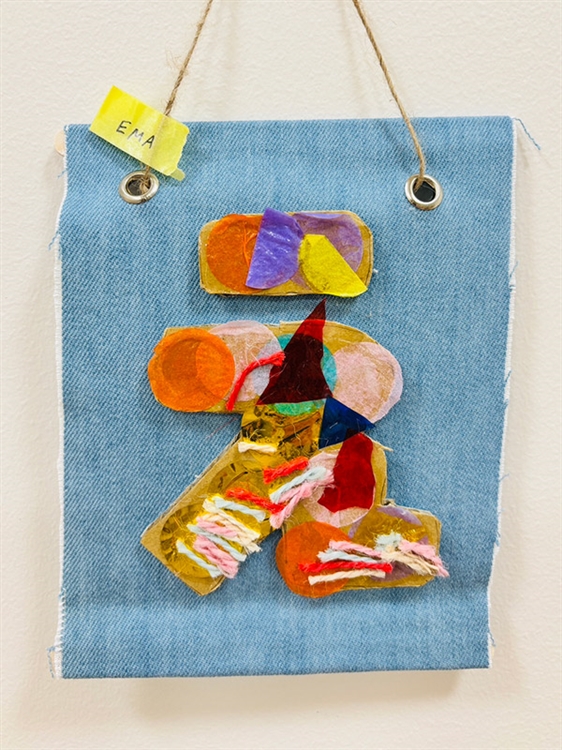 デニムの生地に、頭文字の「ひらがな」を作成。