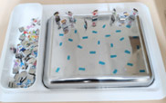 〇料理用の金属製のバットを逆さに使い、スケートリンクを表現してみました。