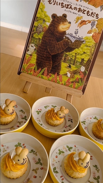 今日のおやつは、絵本「もりいちばんのおともだち」のキャラクターたち!
