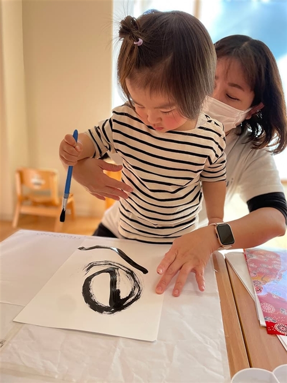 「書き初め」初挑戦の1歳児と2歳児! がんばったね♪