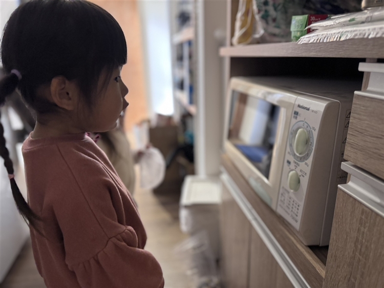 職員室のすみのほうで「あったかくなーれ」って唱える声が聞こえてきたので見に行くと、先生と並んで電子レンジで何かを温めている様子。