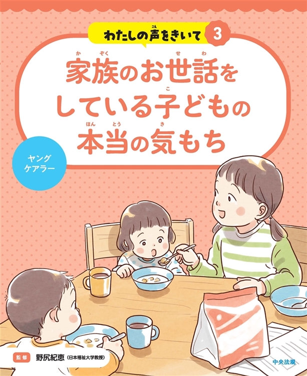 「ヤングケアラー」とは、大人に代わって家事をしたり、小さい弟や妹、祖父母、病気・障害のある家族の世話をしたりしている子どもたちのことです。こうした子どもたちは、自分の時間をもてなかったり、友だちと自由に遊べなかったりすることがあります。また、家族のことで常に心配な気持ちを抱えている場合もあります。