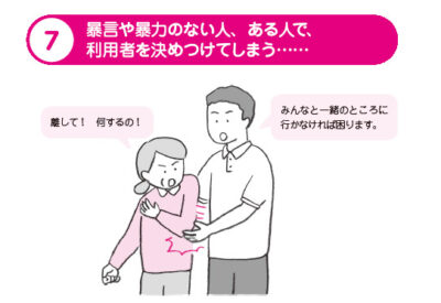 介護職が言ったことに対して、利用者が「離して! 何するの!」と否定しているとも捉えられる返事をしただけで、「暴言・暴力がある人」と決めつけています。