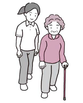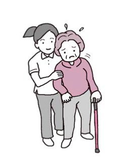 歩行の介助や見守りは、すぐに支えられる位置に立ち、「歩行の3つの動作」がしっかりできているかどうかを確認することが大切です。