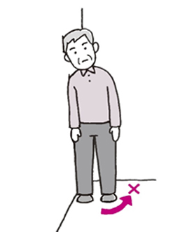 では、今度は、身体の側面をぴったりと壁にくっつけて立ちます。