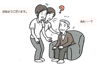 いつも「おはようございます」と声をかけるとすぐに大きな声で「おう、おはよう!」とこたえてくれる利用者が、今日は反応がなく、明らかにいつもと違う状態でした。