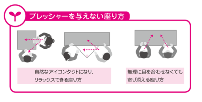 相手がプレッシャーを感じないよう座り方(位置)を工夫してみましょう。