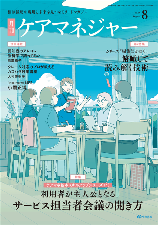 『月刊ケアマネジャー』2025年8月号から、特集(利用者が主人公となるサービス担当者会議の開き方)の内容を一部ご紹介いたします。