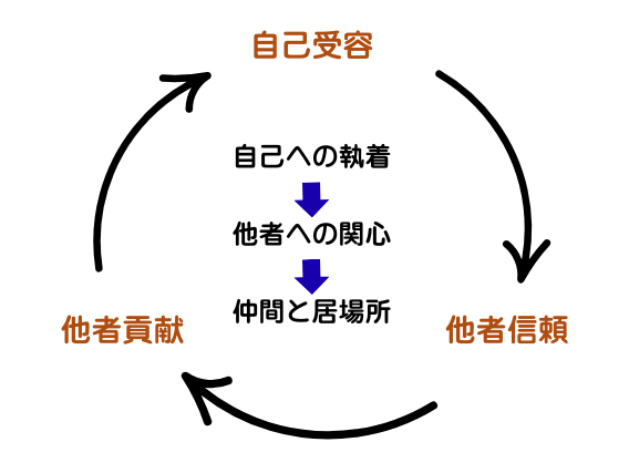 自己受容は、言葉と態度により、他者から受け入れられる経験を通して、少しずつ達成していくため、時間がかかることを理解しよう。自分を受け入れる気持ちが強まれば、それだけ他者を受け入れることができる。完全で理想的な自己受容を目指すのではなく、少しずつ変化していく自分を認めることが大事だ。
