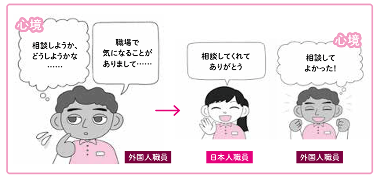日本人職員は相談してくれたこと自体に「ありがとう」と反応しています。