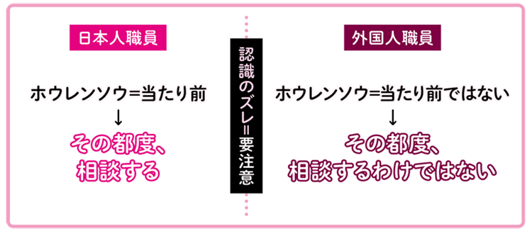 そのため、日本人職員側が、外国人職員も同様にホウレンソウを実践できるという認識をも
