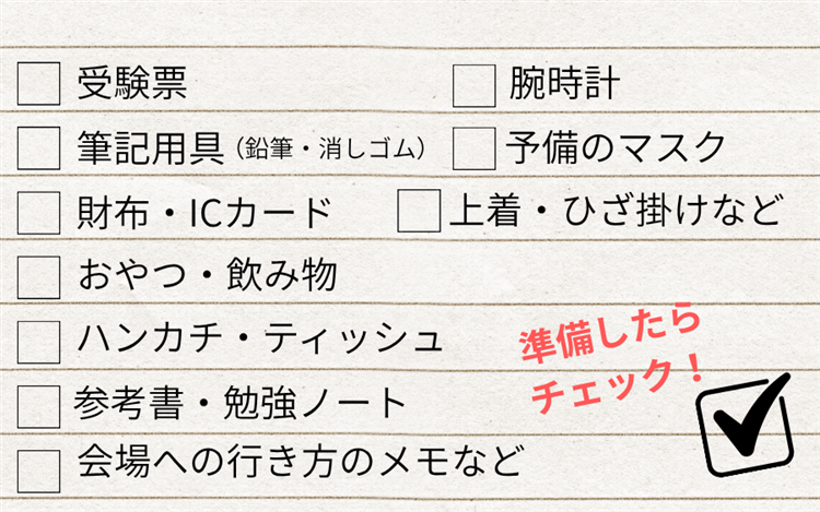 「私は試験前に“持ち物チェックリスト”を作成して、準備を万端にしておきました。皆さんも参考にどうぞ!」(Aさん)