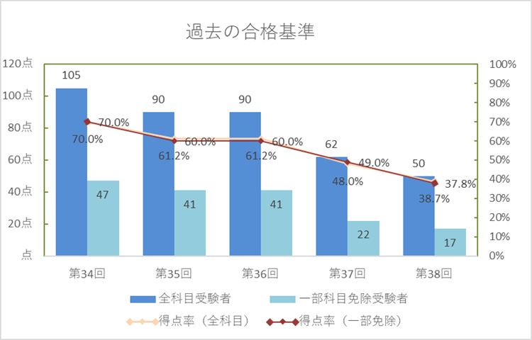 過去の合格ライン、得点率は次の通りです。