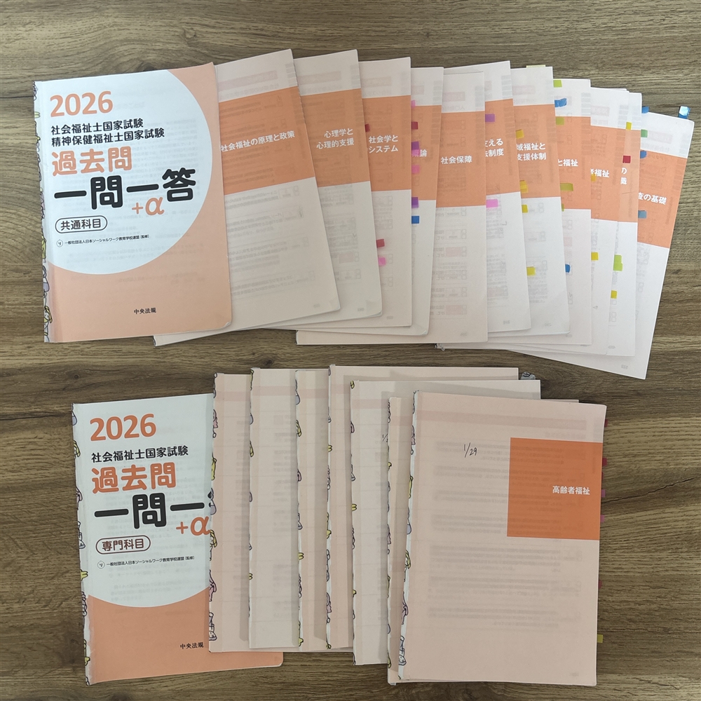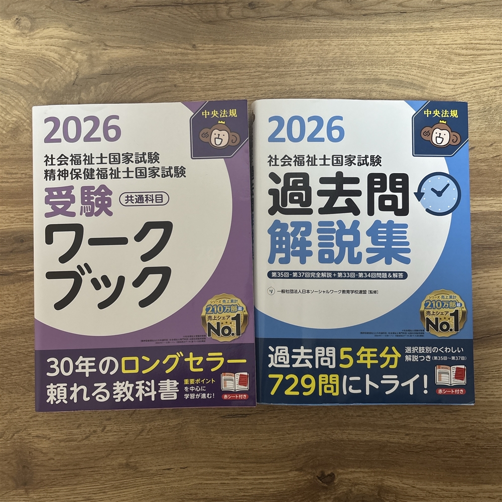 4月に養成校に入学した後、4月から授業のテキストで学んだことは、中央法規の 『社会福祉士過去問一問一答+α2026』 で復習をしました。