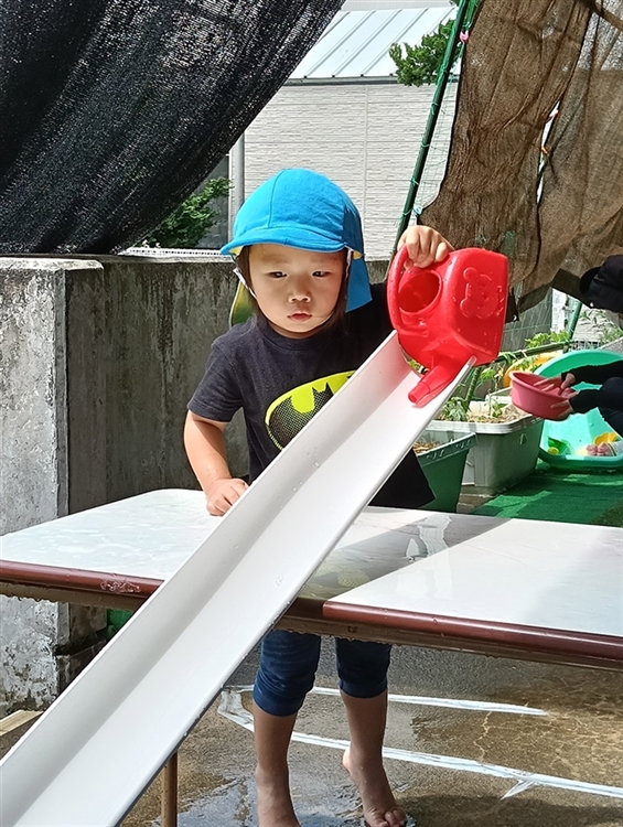 お友だちや保育者の楽しそうな声を聞いて、どんなことを楽しんでいるか見ている目です。