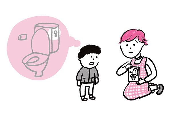 また、絵を見て何が描かれているかわかる子どもでも、描かれた絵が実際に使用するトイレと少しでも異なっていると、「同じもの」と認識しないこともあります。そのようなときには、実際に使用するトイレを写真に撮ってカードを作るなどの工夫が必要です。