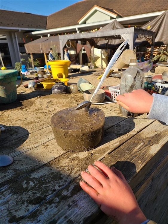 園庭で5歳児がコーヒー屋さんごっこ遊びをして、「『つづき』をするから」と、次の日までそのまま遊びをキープしていました。