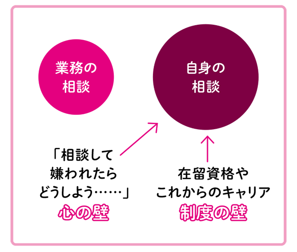 外国人職員は、相談すること自体を迷っている様子でしたが、相談を切り出しています。