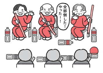 4. 相手チームのペットボトルをすべて先に倒し終えたチームの勝ちです。